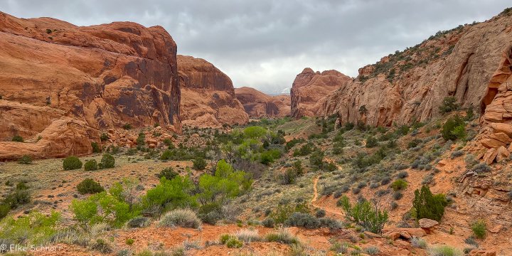 Wir schaffen es fast, im Trockenen zurück zu unserer Unterkunft zu kommen. Dann fängt es an zu schütten wie aus Kübeln — etwas, was wir im Moab bisher noch nie erlebt haben.