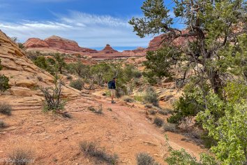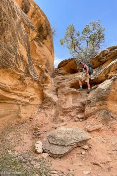Am Abzweig zum Druid Arch checken wir unsere Kraftreserven und befinden, dass der Abstecher mit den zusätzlichen 8 Kilometern noch gut machbar ist. Also geht es nun weiter auf dem Druid Arch Trail, der ebenso schön ist, meistens durch das Bachbett verläuft…