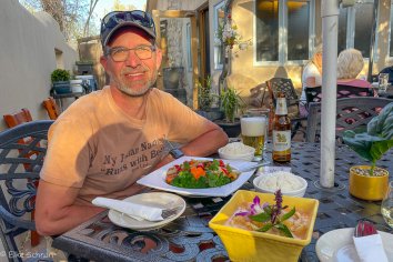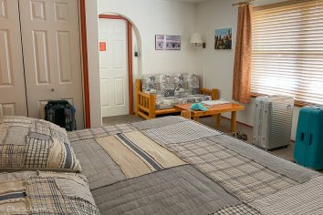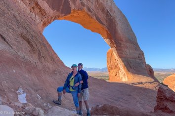 In Moab angekommen, ist es noch etwas zu früh zum Einchecken, also gönnen wir uns bei einem kurzen Stadtbummel erst einmal ein Eis. Als uns Anna vom Desert Hills B&B dann mit einer WhatsApp informiert, dass unser Zimmer ab sofort bereit steht, fahren wir zum B&B und werden dort von den Brunos herzlich wie immer begrüßt. Wir freuen uns total, wieder hier zu sein und die Gastfreundschaft von Anna und Vic sechs Tage lang genießen zu können.