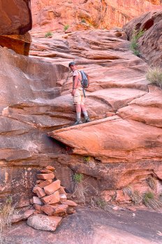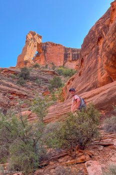 Um zum Arch zu gelangen, muss man dann ordentlich kraxeln und ich komme über die Anfangsstufe leider einfach nicht drüber. Deshalb geht Andreas das letzte Stück alleine…