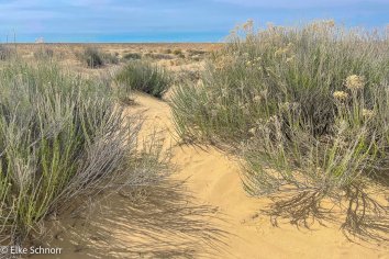 Dann folgen wir immer dem aufgezeichneten GPX-Track, was teilweise etwas mühsam ist: der Weg zieht sich, führt stellenweise durch tiefen Sand und wenn wir nicht sicher wüssten, dass am Ende des Weges ein absolutes Highlight auf uns wartet, dann wäre die Motivation durch diese eher unspektakuläre Einöde zu laufen, wahrscheinlich recht gering.