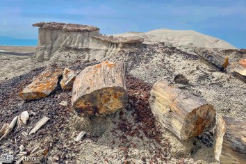 Irgendwann wird die Landschaft aber langsam etwas interessanter und wir entdecken neben diversen Hoodoos auch viel versteinertes Holz in allerlei Farben und Formen: