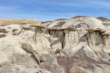Wir machen eine kurze Mittagspause, essen unsere Brote und fahren dann weiter zum zweiten Punkt auf der Tagesordnung: dem Valley of Dreams. Nachdem wir hier ja vor einigen Jahren schon die Bistis und gestern die Ah-Shi-Sle-Pah Wilderness erforscht haben, sind wir gespannt, was die Natur in dieser abgelegenen Region noch so an skurrilen Gebilden hervorgebracht hat.