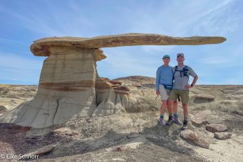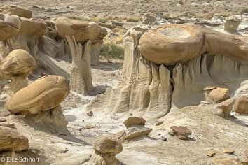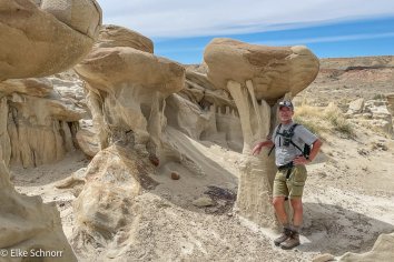 Das Sahnehäubchen am Schluss unserer Rundtour ist die sogenannte Alien City mit ihren riesigen Pilzen, die mit langen Stilen aus den Boden ragen und dem imposanten Alien Throne — einem löchrigen Hoodoo mit futuristischem Charakter.