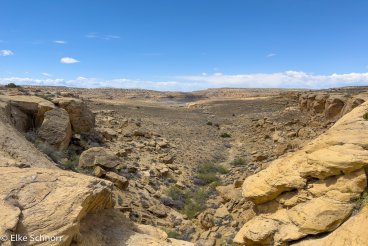 Direkt nach dem Frühstück brechen wir dann auf zu unserem heutigen Tagesziel, denn wir haben eine längere Anfahrtsstrecke. Auf dem Plan steht der Chaco Culture National Historic Park, der bekannt ist für seine gut erhaltenen Überreste der Anasazi-Kultur, die vor über 1000 Jahren hier in der Region lebte.