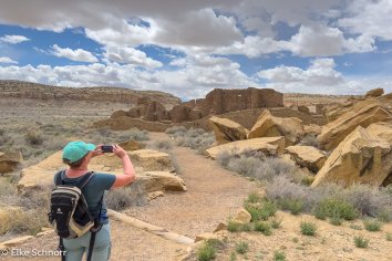 Nach 90 Minuten Fahrt kommen wir gegen 9:45 Uhr im Park an und holen uns zuerst mal eine Karte und ein Back Country Permit im Visitor Center. Hier lassen wir uns auch gleich noch über mögliche Aktivitäten beraten. Wir wollen auf jeden Fall eine Führung im Pueblo Bonito mitmachen — eine der größten und am besten erhaltenen Pueblo-Siedlungen in Chaco Canyon — und sind außer dem Besichtigen der Ruinen auch noch auf etwas Bewegung aus.