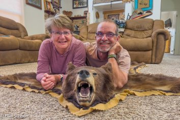 Heute müssen wir in Page die Unterkunft wechseln, da bei Bubba leider nur drei Tage am Stück frei waren und heute bei ihm die nächsten Gäste ankommen. Wir genießen das letzte Frühstück und plaudern mit den anderen Besuchern aus Deutschland, bis wir schließlich gegen 8:15 Uhr aufbrechen. Aber natürlich nicht, ohne vorher noch ein obligatorisches Foto mit Paula zu machen. Der Vergleich mit 2015 ist der Beweis dafür, dass die Jahre an niemandem spurlos vorbeigehen