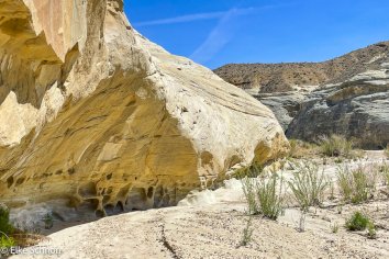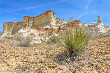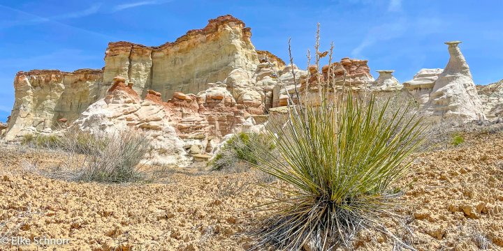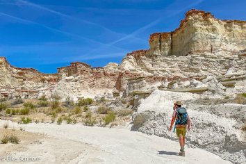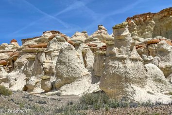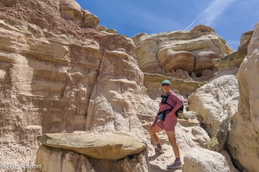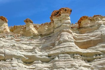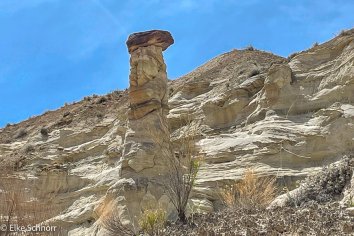 Nach knapp zwei Stunden entdecken wir dann den ersten Hoodoo und hoffen, dass es ab jetzt etwas spannender wird. Und das wird es in der Tat. Es dauert gar nicht lange, bis wir in eine Wunderwelt aus weißen Hoodoos eintauchen und gar nicht wissen, wo wir die Kamera zuerst hinrichten sollen.