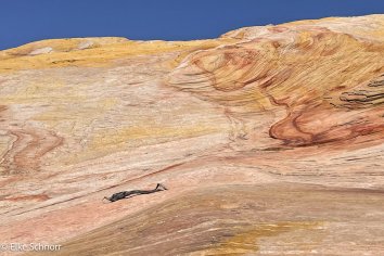 Als erster Zwischenstopp steht an der Cottonwood Canyon Road der Yellow Rock auf dem Plan. Diesen haben wir zwar vor acht Jahren schon einmal besucht, aber es ist einfach eine so tolle Location und da sie heute direkt an der Strecke liegt, bietet sich eine Wiederholung regelrecht an.