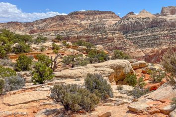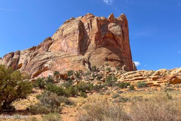 Gegen 10:15 Uhr kommen wir im Capitol Reef Nationalpark an. Hier legen wir fast immer bei der Durchfahrt eine längere Pause ein, um eine der vielen tollen Wanderungen zu machen. So auch diesmal. Nachdem wir uns noch eben einen neuen Nationalparkpass zugelegt haben, fahren wir zunächst für eine Runde den Scenic Drive entlang.