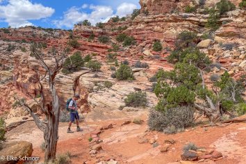 Da der Abzweig zum Cassidy Arch Trail etwas versteckt ist, machen wir am Anfang prompt den Fehler, den anderen Leuten einfach hinterher zu laufen und verpassen ihn. Zum Glück merken wir es aber recht bald und drehen wieder um.