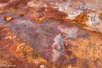 Gegen 8:15 Uhr sind wir bereit zum Aufbruch. Bevor wir weiter gen Osten fahren, entscheiden wir uns noch für einen kurzen Abstecher zum Chrystal Geyser in der Hoffnung, eine spektakuläre Sprudelshow zu erleben. Leider ist der Geyser aber etwas schüchtern und bleibt still. Ein paar Fotos gibt es trotzdem: