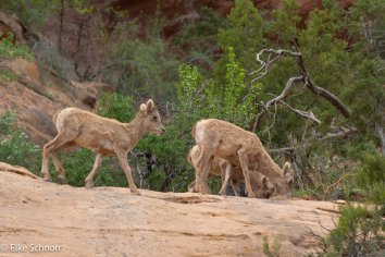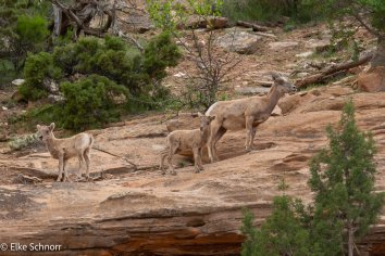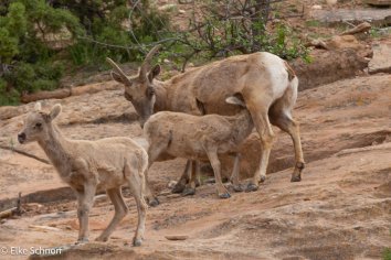 Gleich zu Beginn des Scenic Drives werden wir von einer größeren Gruppe Mountain Sheeps begrüßt – einschließlich niedlicher Babys, die gerade am trinken sind. Ein entzückender Anblick!