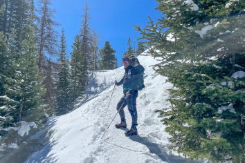 Wir laufen eine schöne Runde über den Nymph Lake, den Dream Lake und den Emerald Lake. Es liegt noch richtig viel Schnee — wir sind hier immerhin auf ca. 3000 Meter — und wir sind echt froh über unsere „Schneeketten“ für die Wanderschuhe.
