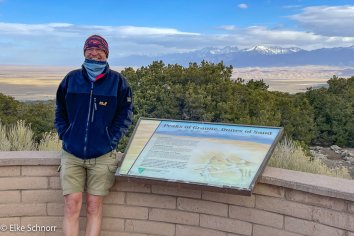 Wir halten noch an einem Viewpoint mit letzten Ausblicken auf die Dünen und fahren gegen 9:00 Uhr weiter in Richtung New Mexico, wo es hoffentlich etwas wärmer sein wird.