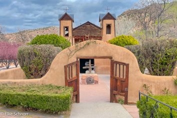 Für die Weiterfahrt nach Santa Fe begeben wir uns von hier auf die High Road to Taos. Diese führt durch viele kleine schnuckelige Örtchen und bietet tolle Ausblicke auf die umgebende Landschaft. Und wenn man die hübschen Kirchen im Adobe Stil mag, kommt man hier voll auf seine Kosten: