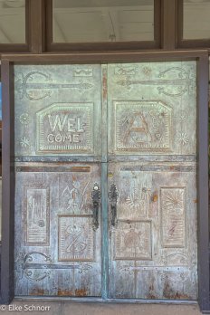 Wir legen eine Pause ein und bummeln eine Stunde durch das äußerst hübsche Städtchen. Hier hatte es uns schon bei unserem Besuch in 2012 richtg gut gefallen und wir erfreuen uns einmal mehr an der tollen Adobe-Architektur und den vielen hübschen Eingangstüren und Wandmalereien.