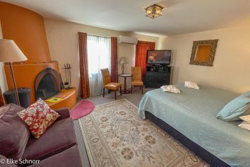 Hier ist es richtig nett: wir haben einen Kamin mit vorbereitetem Feuerholz und und allem was man sonst so braucht. Uns gefällt es sehr gut und wir werden uns in dem kommenden drei Tagen hier ganz bestimmt wohl fühlen. Es gibt zwar kein Frühstück, aber in Santa Fee hat es ja Restaurants zu Hauf, so dass wir sicher auch nicht verhungern werden