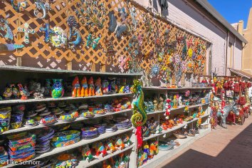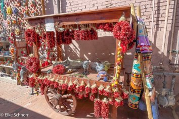 Nachdem wir im Maverick kurz unsere Getränkevorräte aufgefüllt und getankt haben, bringen wir das Auto zurück zur Unterkunft und spazieren dann noch ein wenig durch die bunten und blühenden Straßen von Santa Fe.