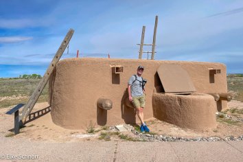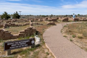 Wir laufen eine große Runde durch die Ruinen der Kuaua-Puebloanlage und bekommen dabei einen spannenden Einblick in die Geschichte der Region und die frühen Begegnungen zwischen verschiedenen Kulturen.