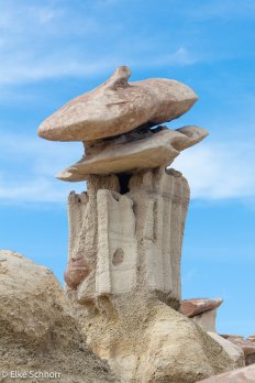 Wir parken unser Auto, schnüren die Wanderstiefel und marschieren los zu einer Entdeckungstour durch dieses Gebiet in völliger Abgeschiedenheit. Am Anfang sind wir noch etwas skeptisch, denn von unserem Parkplatz aus lässt sich nicht ansatzweise erahnen, welches Hoodoo-Eldorado uns hier erwartet: