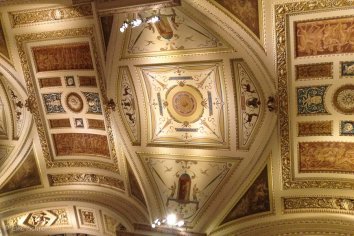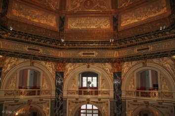 Schon die Innenausstattung des bunt marmorierten Treppenhauses und die kunstvoll verzierten Decken sind ein echter „Hingucker“: