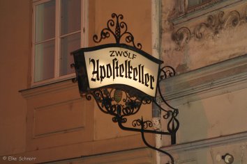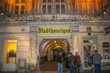 Am zweiten Abend beschließen wir, eines der Wiener Heurigen-Lokale zu testen und landen im Zwölf Apostelkeller. Keine ganz schlechte Wahl, wie wir feststellen: die Weinstube liegt in den Kellergewölben eines unter Denkmalschutz stehenden Hauses aus dem 12. Jahrhundert und verströmt eine nostalgische Atmosphäre.