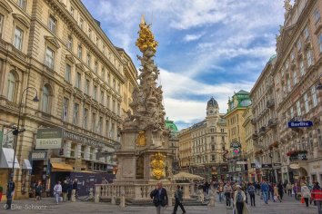 Weiter geht es auf unserem Stadtrundgang zum Graben — einer zentralen Shopping- und Flanierzone rund um den Dom. Da hier aber eher teure Nobelboutiquen angesiedelt sind, bleibt es für uns beim „Window shopping“ und unser Portemonnaie wird geschont.