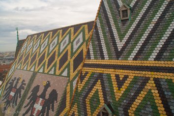 Das aufwendige Zickzackmuster besteht aus ca. 200.000 mehrfarbig glasierten Ziegeln, die mit dem Doppelkopfadler — dem Symbol der Habsburger — verziert sind.