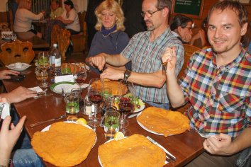 Wir verbringen einen recht gemütlichen Abend und das Schnitzel ist wirklich lecker und fast nicht zu schaffen, so groß ist es. Nur für die Männer fehlt leider der letzte Tropfen zur Glückseligkeit, denn es gibt kein Bier beim Figlmüller.